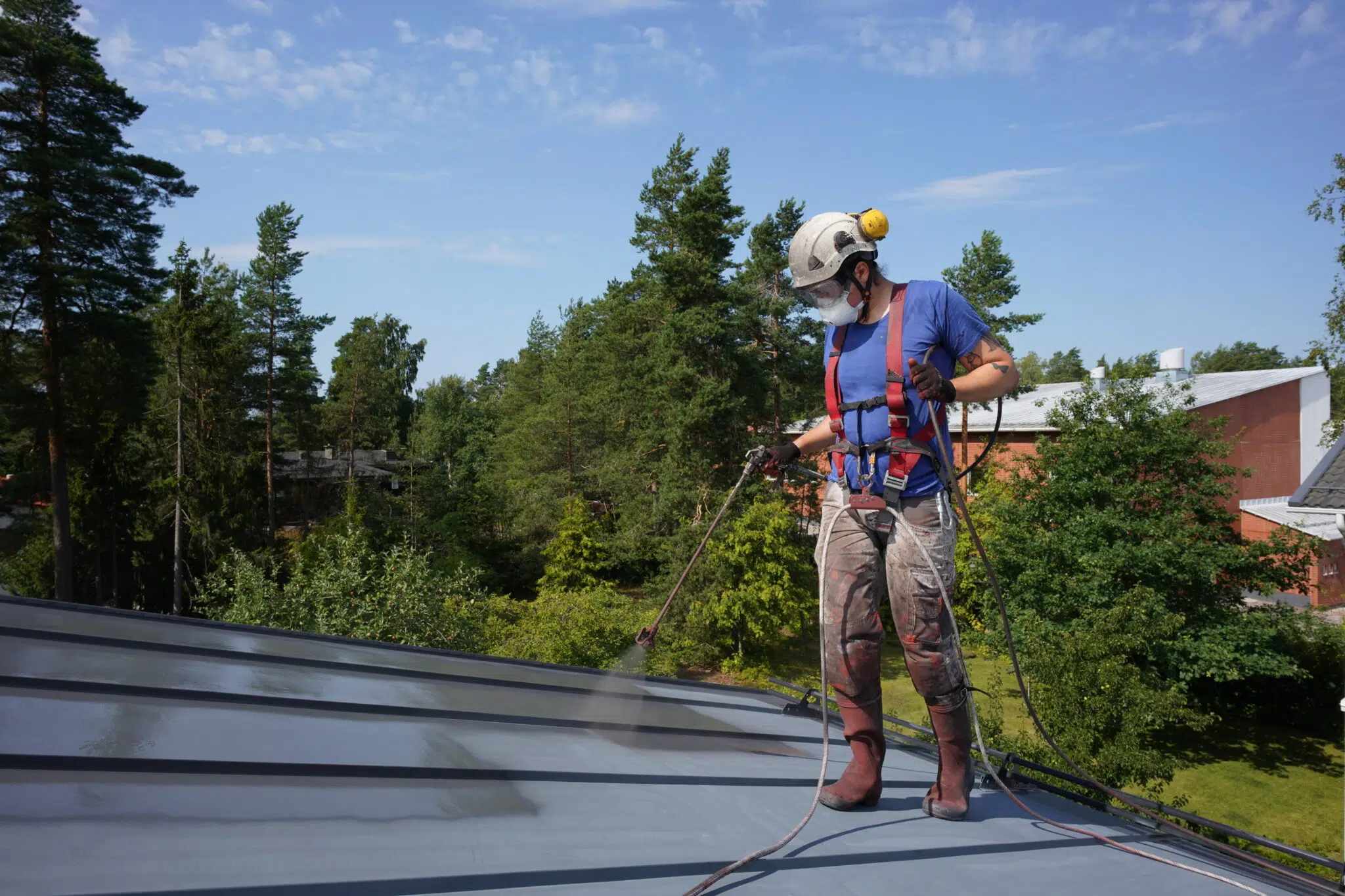 Pesu, korjaukset ja kattomaalaus/pinnoitus. Siisteys ja suojaus etusijalla.