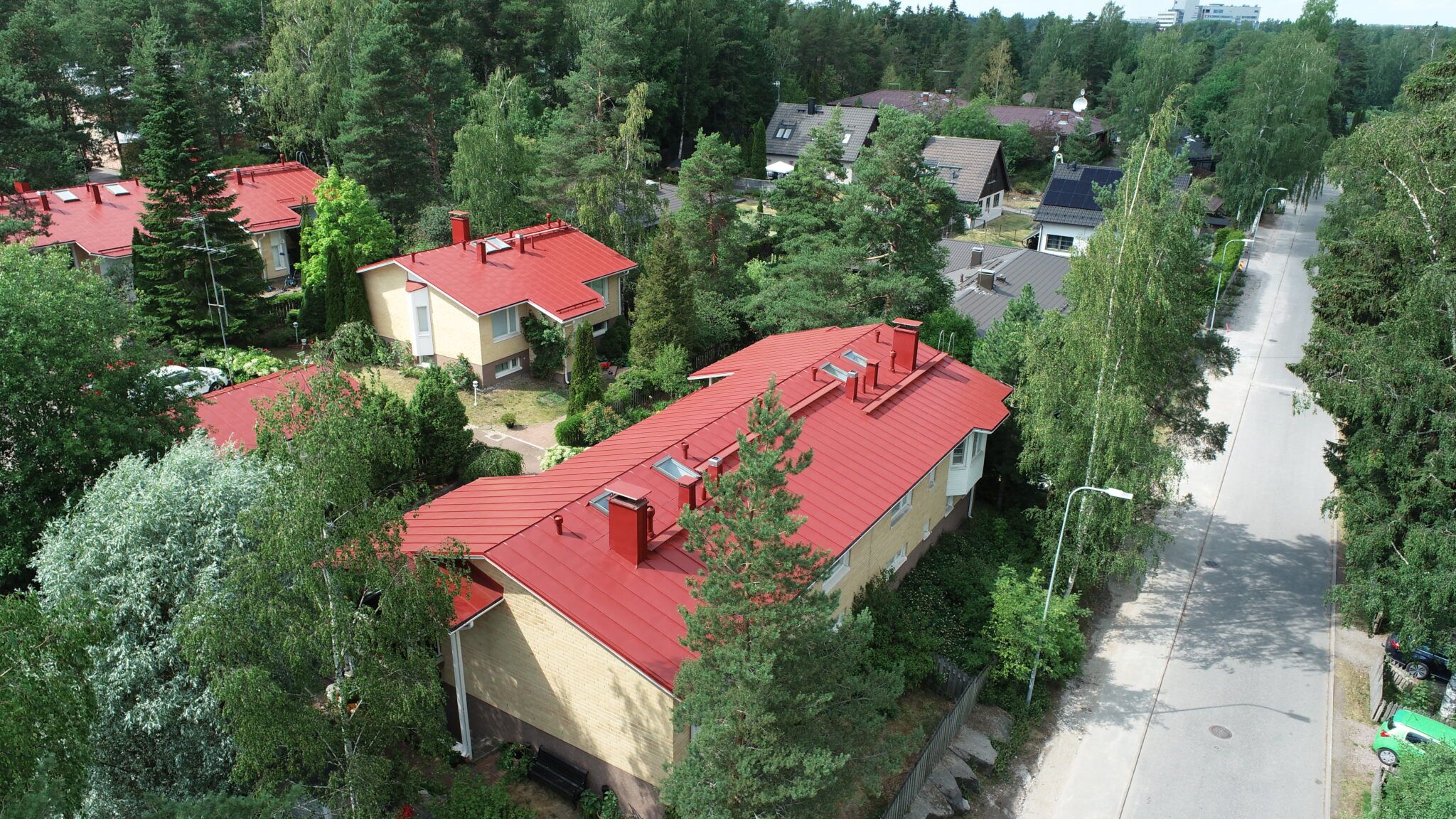 Taavinsuo 9, Espoo on taloyhtiökohde, jossa toteutettiin peltikaton huoltomaalaus RR29 (punainen) -sävyllä. Käsiteltävä pinta-ala oli noin 500 m², ja maalaus tehtiin NowoMetal 1K -maalilla kertaalleen. Työ valmistui noin viikossa.